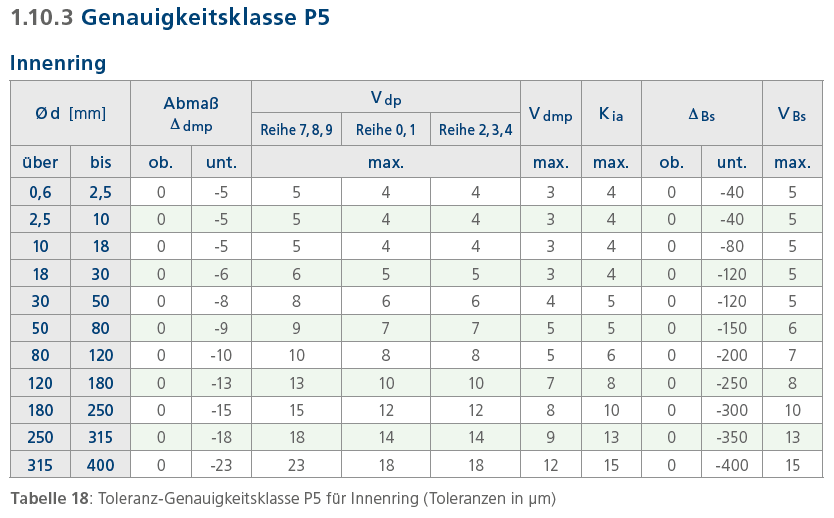 V Bs Schwankung der Innenringbreite