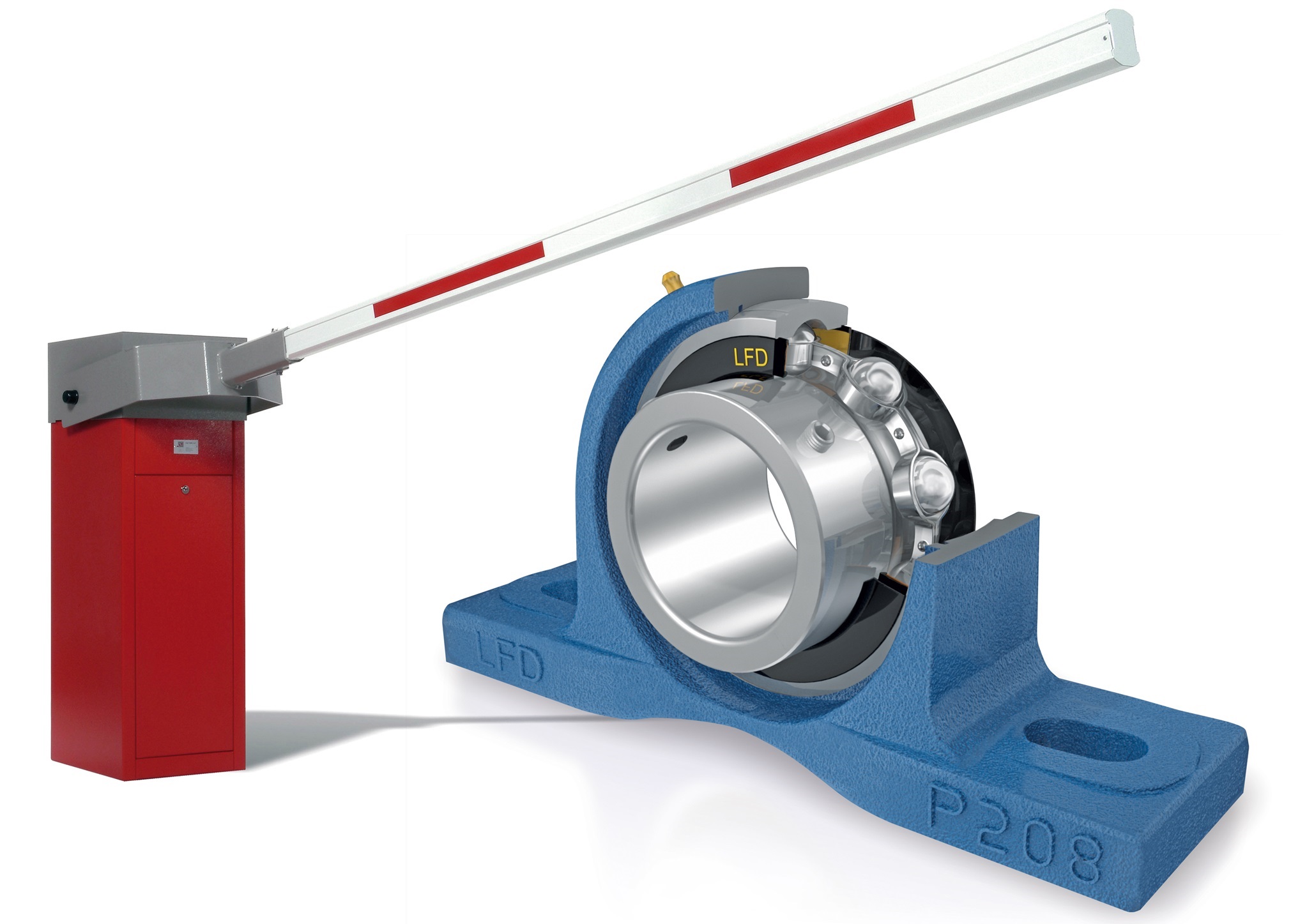 Bei den eingebauten Gehäuselagern ist eine extreme Dauerbelastungsfähigkeit gefordert. Nach der Erfahrung der Schrankenanlagenhersteller, sind die robusten LFD-Gehäuselager für den Einsatz in Schranken weit überdimensioniert und müssen trotz Schmiernippel in der Regel nicht nachgeschmiert werden.